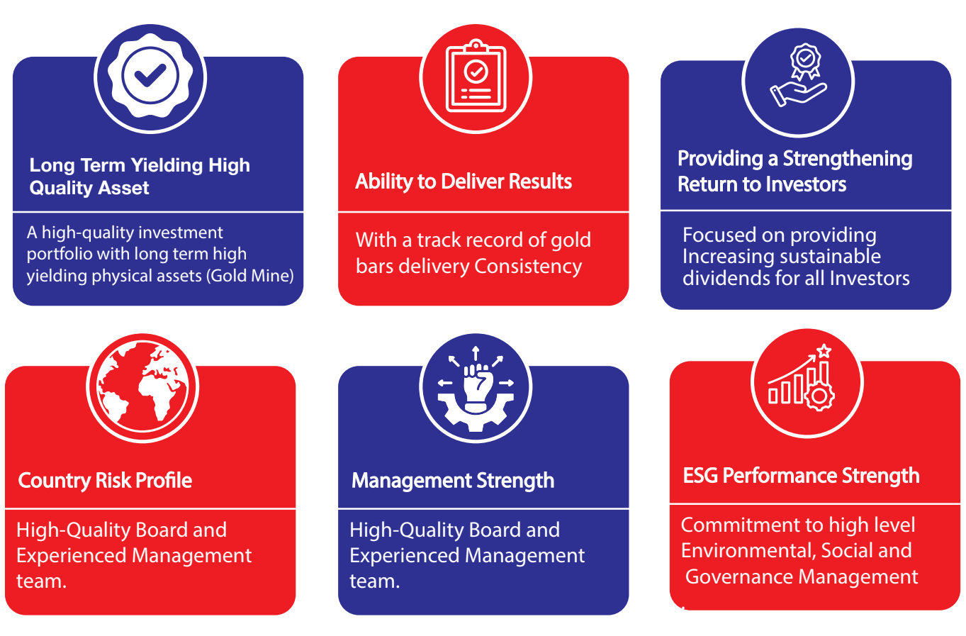 A high-quality investment portfolio with long term high yielding physical assets (Gold Mine)